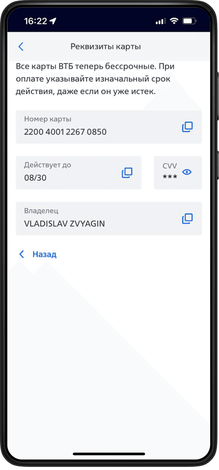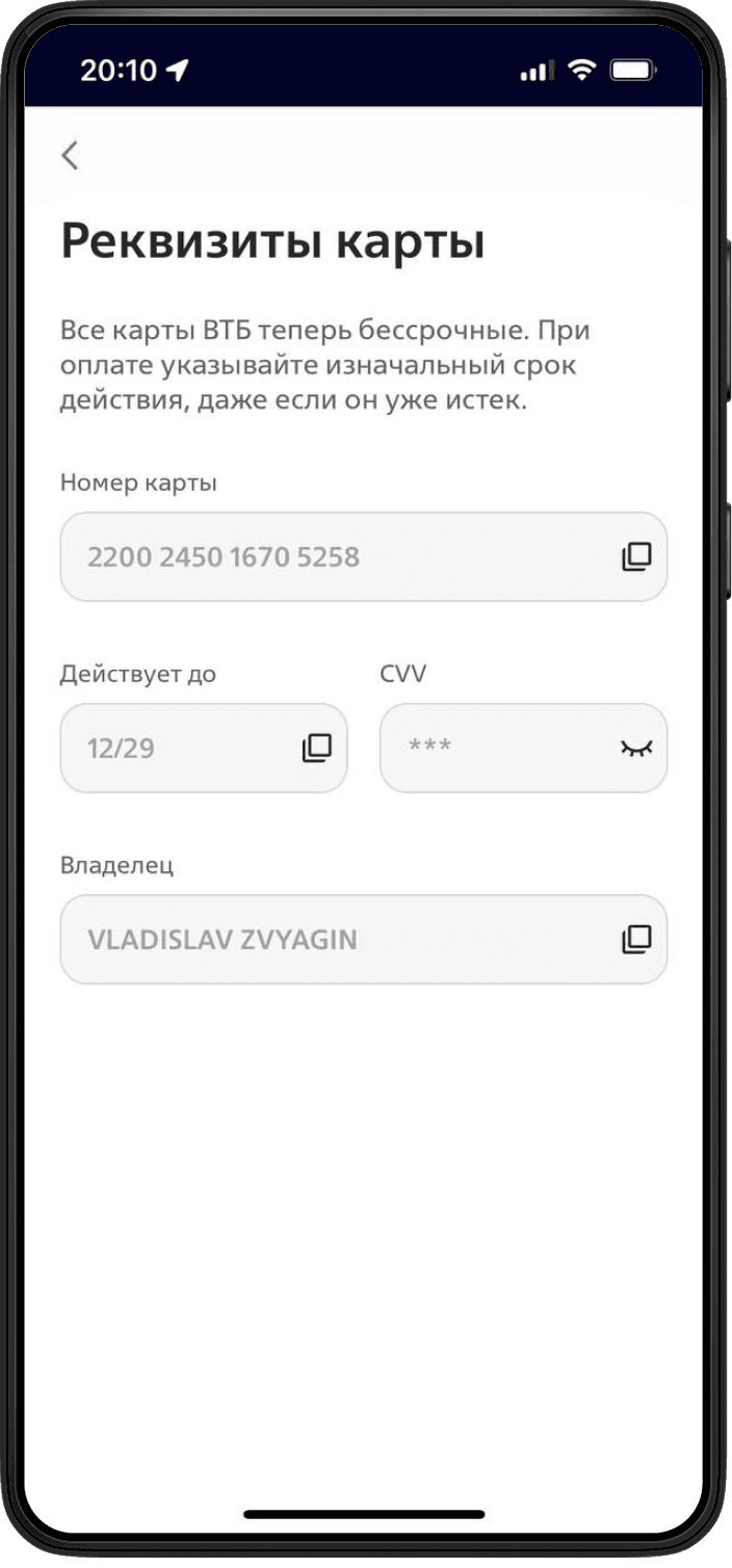 Сделать одинаковый показ реквизитов карты в вебе и приложении