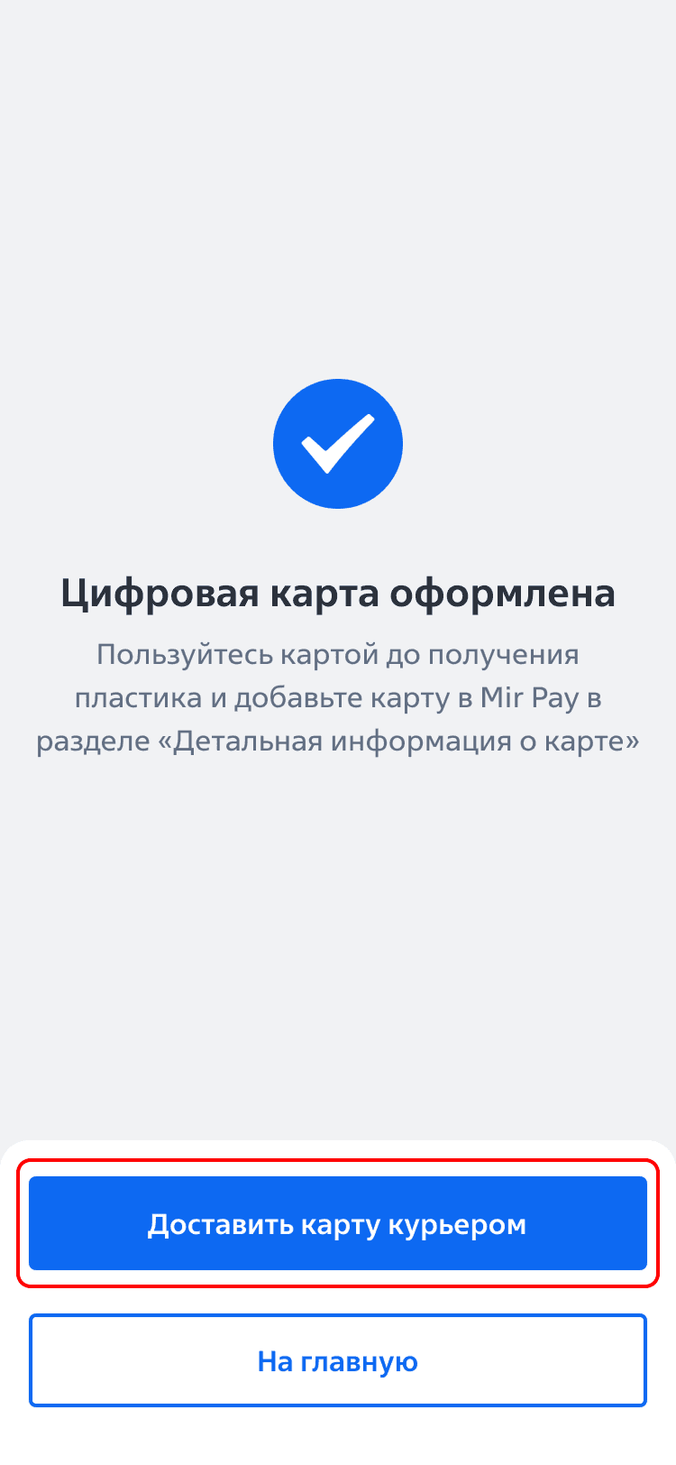 Переходят на заказ пластиковой карты курьером после выпуска цифровой карты